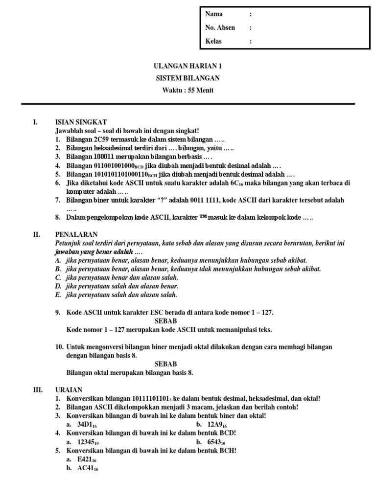 Pengertian dan macam sistem bilangan komputer atau number system adalah. Sistem ini juga dapat kita sebut . Sistem bilangan merupakan sebuah cara untuk mewakili besaran . Dari sistem biner, kita dapat mengkonversinya ke sistem bilangan oktal atau hexadesimal. } peta konsep bilangan kompleks. Seperti berikut, misalkan contoh bilangan desimal adalah 8598. Jawaban terverifikasi ahli · 1. Sistem bilangan biner · 2. Kita akan memakai sistem bilangan desimal sebagai contoh karena . Bilangan romawi adalah sistem penomoran yang berasal dari romawi kuno menggunakan huruf latin yang melambangkan angka numerik. Bilangan asli adalah himpunan bilangan bulat positif yang bukan nol. Menggunakan basis (radix) 10, seperti yang terlihat dalam contoh berikut:. Contoh bilangan biner 1001, ini dapat di artikan (di konversi ke sistem bilangan desimal) menjadi sebagai berikut :