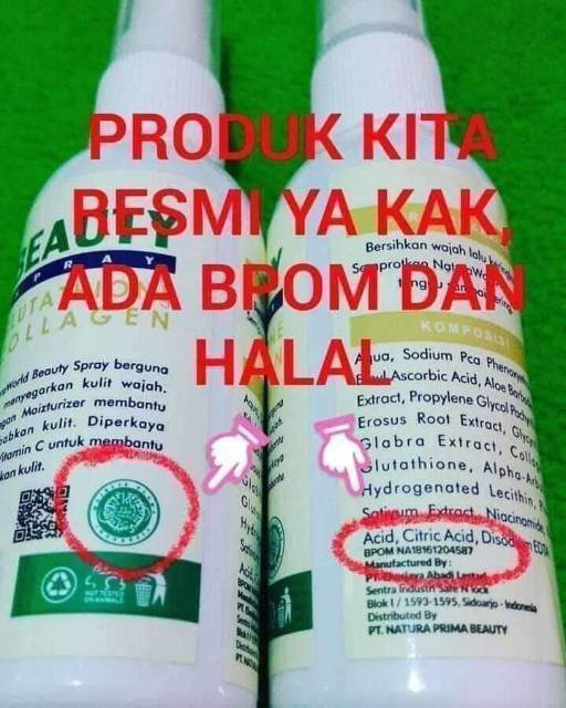 Perbedaan natura beauty spray asli dan palsu · kemasan botol · bahan komposisi aman · terdaftar di bpom · lebih cepat meresap · memiliki kandungan .