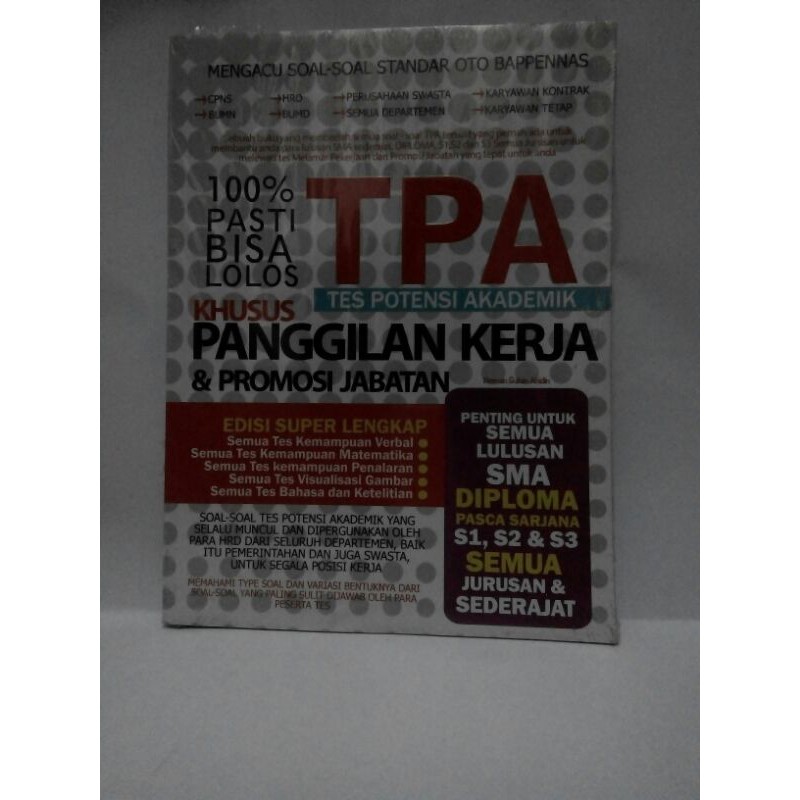 Adapun tes potensi akademik ini umumnya memiliki empat jenis . Buku siap tembus tes tpa s1/s2. Buku siap tembus tes tpa s1/. Download soal tes potensi akademik (tpa). Bank soal tpa (tes potensi akademik) masuk sma favorit/ptr100287409.